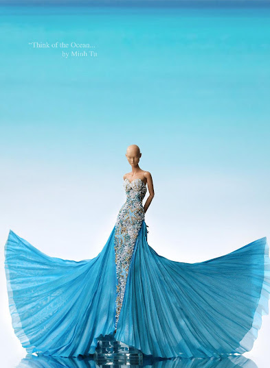 A restyled Diana Prince wearing a one shoulder gown. The gown is made of blue Ombre silk lined in pale lavender Habotai silk. Details include a rosette on shoulder and attached side train. Diana has had her hair restyled and eyelashes added.